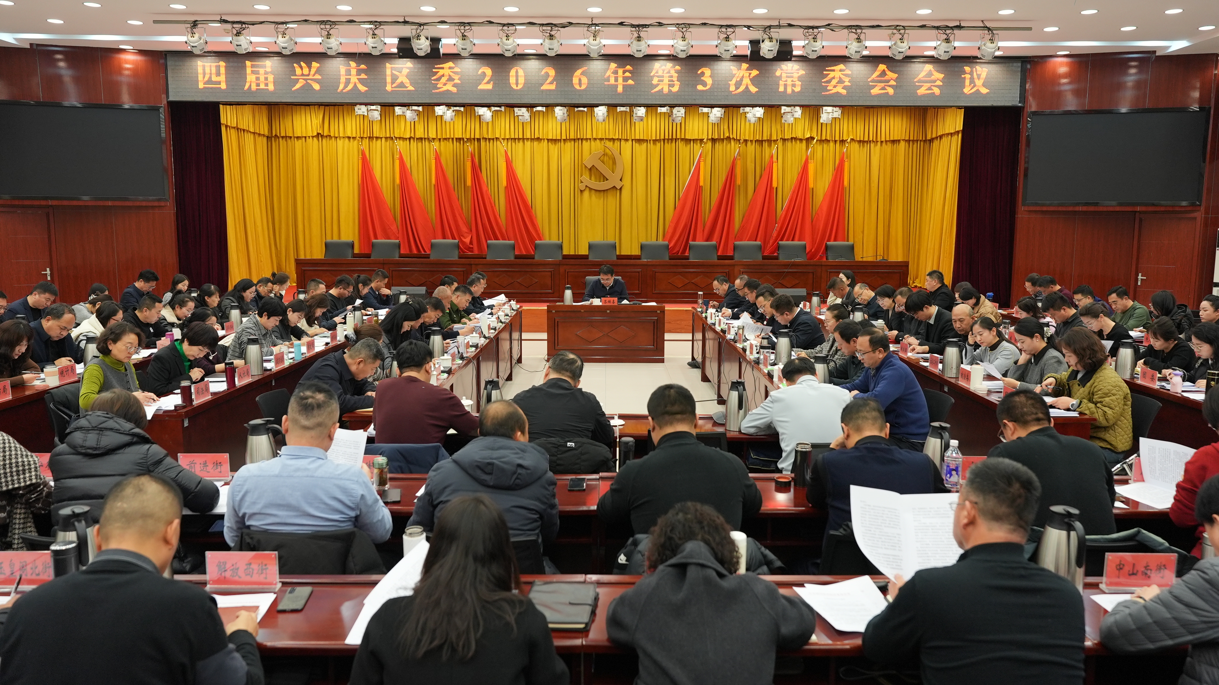 1月26日,银川市委常委、兴庆区委书记苏焕喜主持召开四届兴庆区委2026年第3次常委会会议,传达学习习近平总书记近期重要讲话及中央、自治区有关会议文件和银川市两会精神,研究召开兴庆区纪委四届六次全会相关事宜,听取各群团组织2025年工作总结及2026年重点工作谋划情况汇报,安排下一步工作。