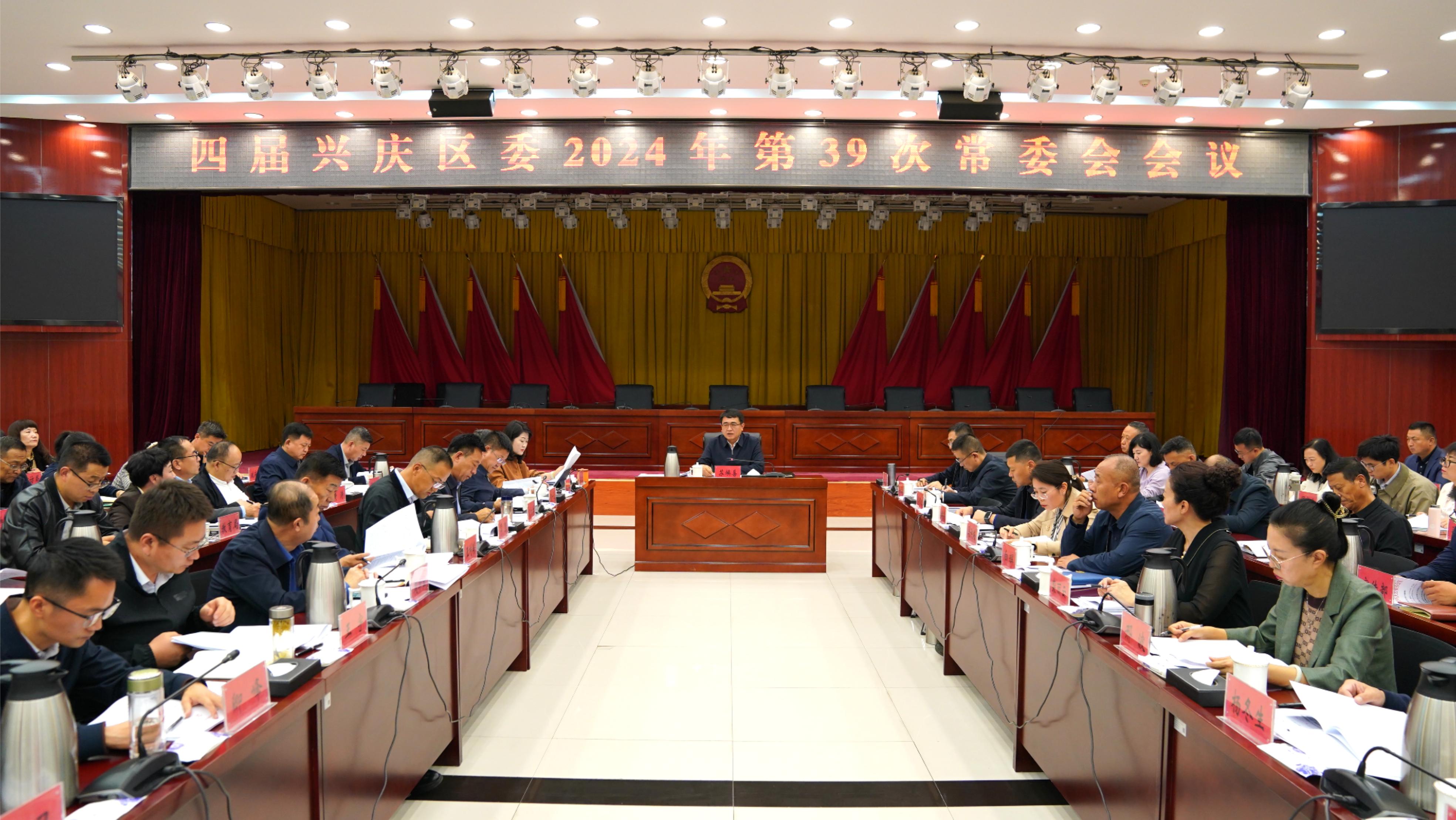 10月12日下午,银川市委常委、兴庆区委书记、苏银产业园党工委书记苏焕喜主持召开四届兴庆区委2024年第39次常委会会议,传达学习习近平总书记近期重要讲话重要回信贺信精神、《党政领导干部选拔任用工作条例》等文件精神、全国和自治区群众身边不正之风和腐败问题集中整治推进会及相关通知精神、自治区党委第一生态环境保护督察组督察意见反馈会会议精神、银川市委十五届十二次全会精神并研究贯彻落实意见,听取兴庆区干部队伍建设情况汇报、政府党组关于招商引资情况汇报,审议相关工作方案。
