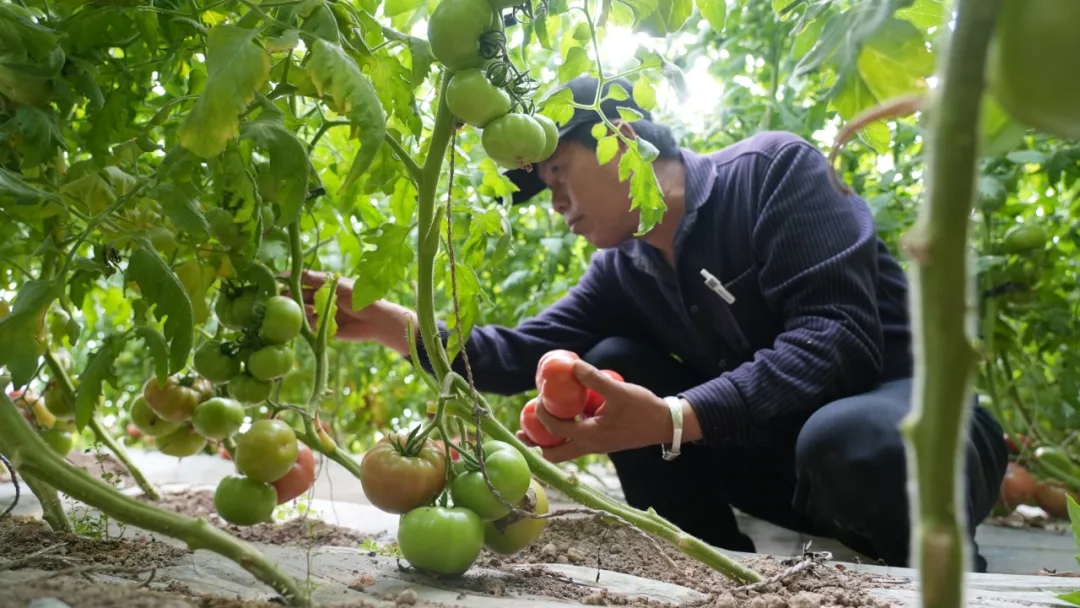眼下,兴庆区掌政镇镇河村的西红柿、黄瓜等蔬菜迎来收获季,田间地头一片繁忙景象。走进镇河村一处的西红柿大棚,藤蔓交织的间隙中,一串串如玛瑙般的西红柿让人垂涎欲滴。赵平在大棚内外忙碌穿梭,掐芽、缠蔓、采摘、搬运,脚步匆匆。