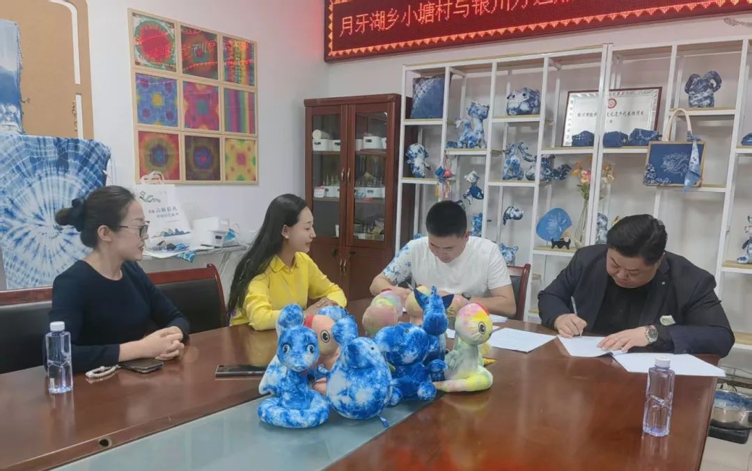 近日,兴庆区月牙湖乡小塘村与银川富力万达嘉华酒店就扎染手工艺品代销正式签约。此次签约不仅标志着这项古老的非遗技艺与现代文旅产业深度融合,更为月牙湖乡乡村振兴注入强劲动能。