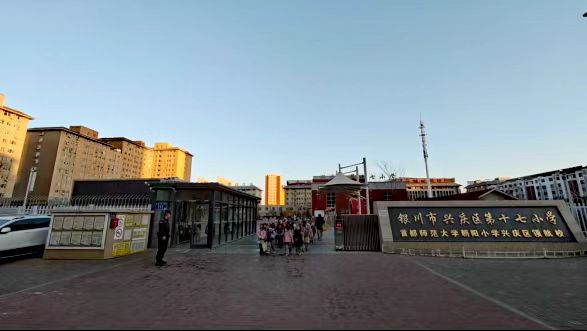 银川市兴庆区第十七小学始建于1958年,坐落于兴庆区新华东街金茂巷111号,与宁夏回族自治区同龄。学校现有38个教学班,2040名学生,86名专任教师,其中各级骨干教师21人,是兴庆区人数最多的单体校,也是首都师范大学朝阳小学兴庆区领航校。 学校坚守“红花朵朵向太阳”的校训,践行赏识教育,以“做有温度的教育,办高质量的学校”为使命,构建五育融合的和谐教育生态。学校先后获评自治区终身学习品牌项目校、AI创生学校共同体项目校、自治区艺术展演一等奖、银川市创新素养工作先进单位、银川市教科研先进集体、兴庆区五育融合优质校等荣誉。学校的战鼓、皮影、合唱、舞蹈、朗诵等社团在省市比赛中屡获一二等奖;课本剧荣获银川市校园剧一等奖;所录制的视频《了不起的零零后》入选“弘扬社会主义核心价值观 共筑中国梦”优秀节目并在全国推广展播。