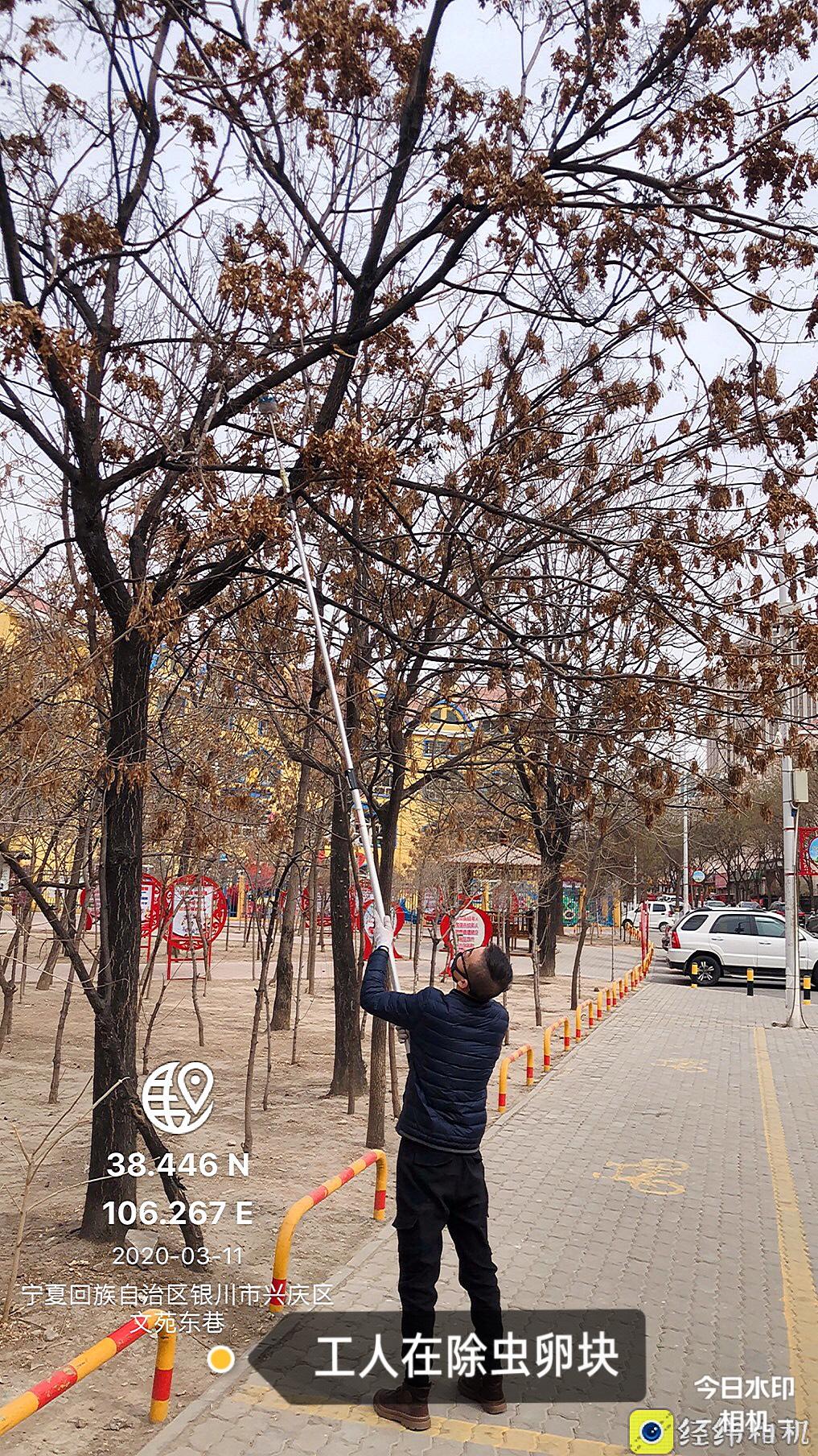 今年春,兴庆区自自然资源局制定了《城市街巷行道树斑衣蜡蝉综合防治技术方案》,委托有经验的作业公司对辖区内现有街巷臭椿树上的斑衣蜡蝉进行综合防治。3月9日起,作业公司对自强巷、宗睦巷等街巷共计700余株臭椿树树干实施了刮除卵块的工作,能有效减少虫源数量、降低虫害大发生的几率。