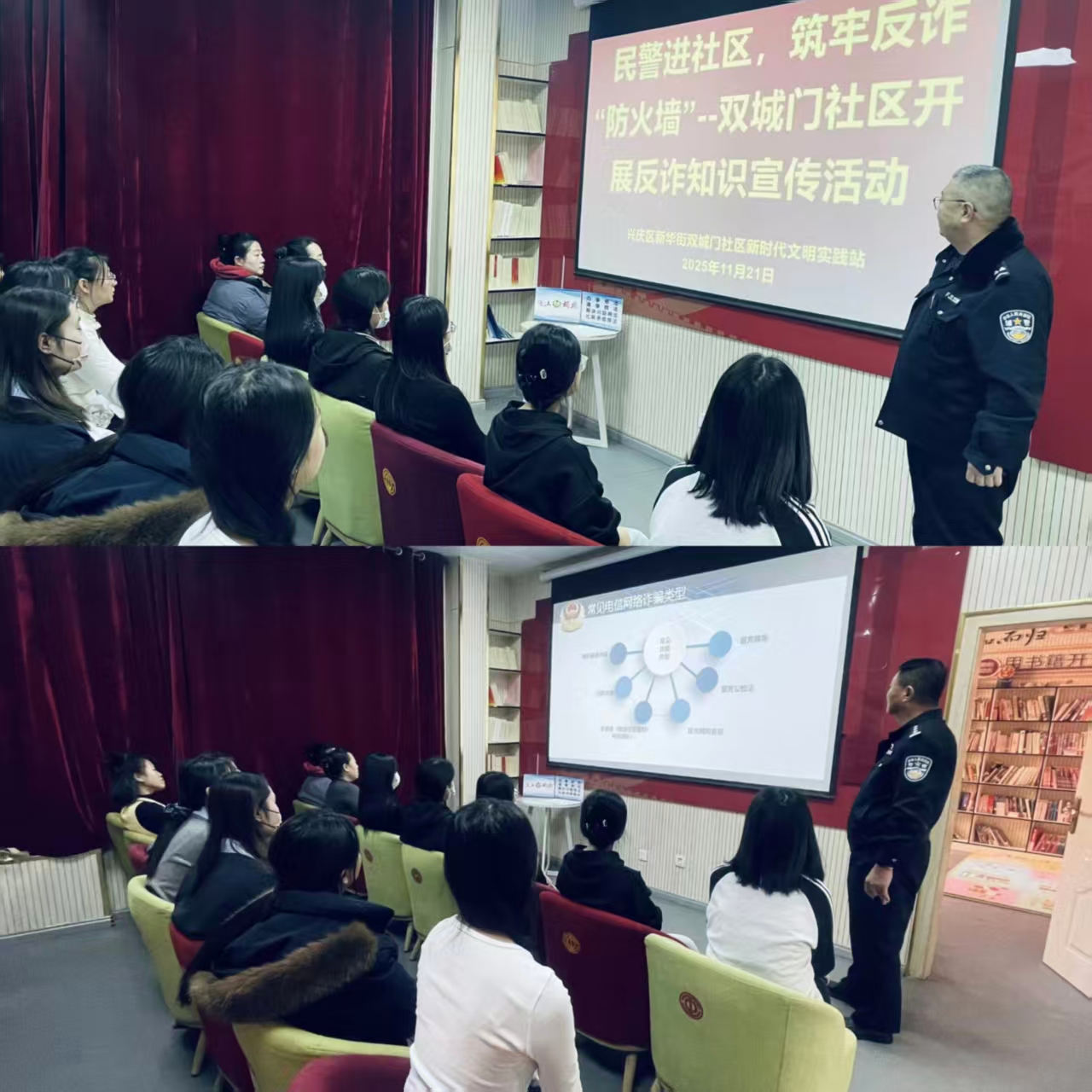 11月21日,新华街街道办事处联合辖区派出所,将“反诈服务阵地”搬到双城门社区,开展“民警进社区,筑牢反诈‘防火墙’”主题“开门办实事”开放日活动。民警及社区工作人员身披反诈宣传绶带、手持案例手册,围绕电信网络诈骗、传统诈骗等高发类型,聚焦老年群体、商户等重点人群需求,通过真实案例宣讲、骗局套路拆解、防范技巧传授等方式,为现场居民答疑解惑,指导防范举措。