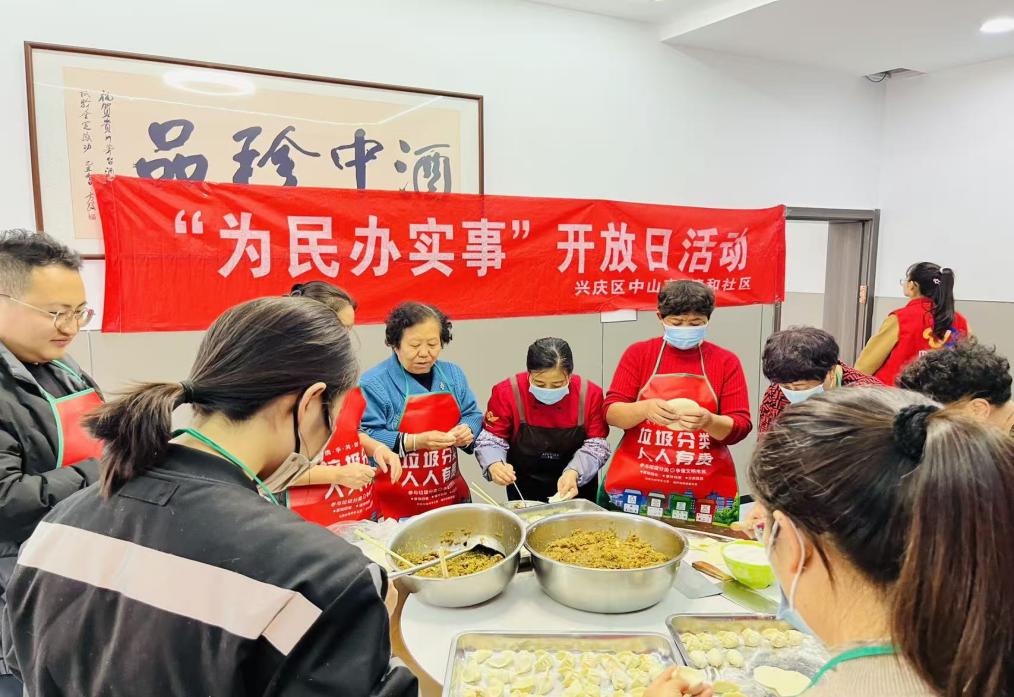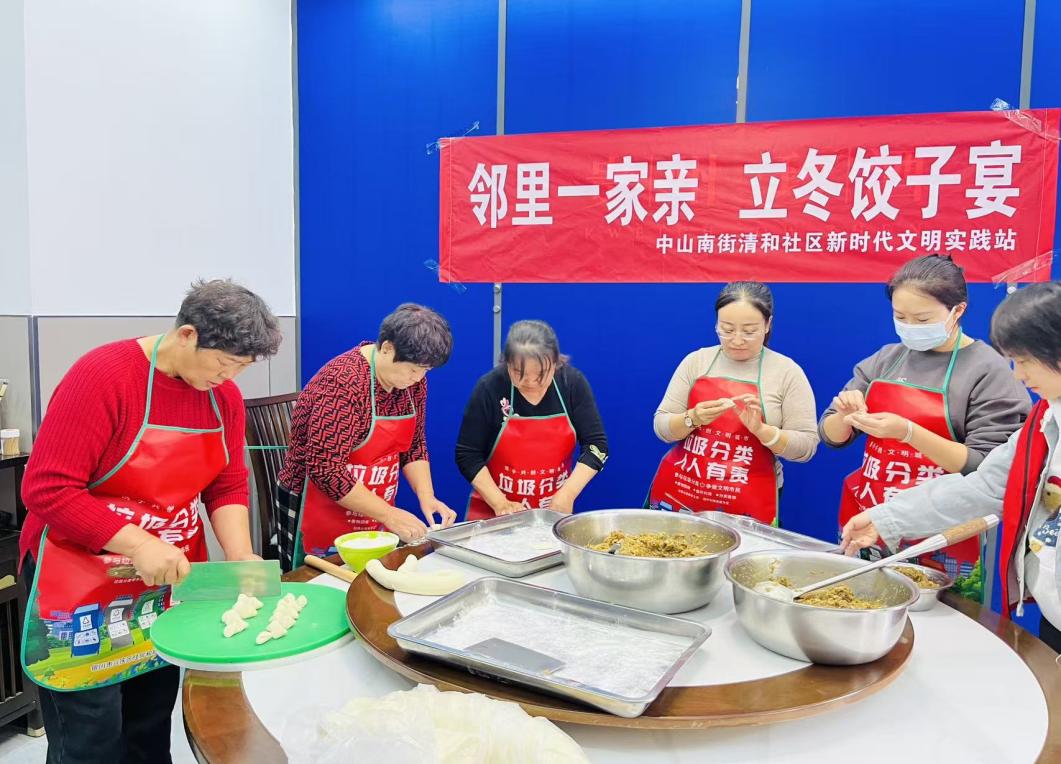 立冬这天,清和社区开放日在新时代文明实践站里举办一一场格外热闹的饺子宴,左邻右舍聚在一起,边包饺子边拉家常,社区食堂里洋溢着浓浓的团圆气息。