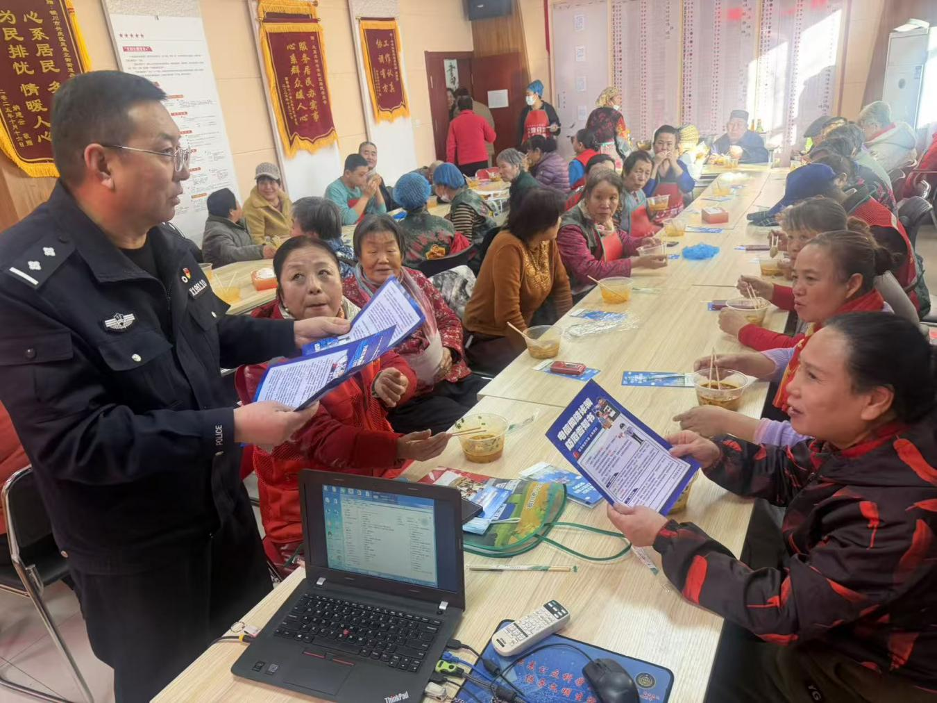 此次活动的核心环节,当属社区民警带来的反诈宣传。趁着居民集中相聚的有利时机,社区民警化身反诈宣传员,主动融入居民中间,以“拉家常”的方式开展反诈宣讲。民警结合近期电信网络诈骗高发案例,重点讲解冒充客服退款、虚假投资理财、养老诈骗、冒充亲友借钱等高频骗局,用通俗易懂的语言拆解作案手法、点明识别要点,反复叮嘱居民牢记“不轻信陌生来电、不透露个人信息、不点击可疑链接、不随意转账汇款”的反诈四要素。同时,民警向居民发放反诈宣传手册,耐心解答大家提出的疑问,手把手指导居民辨别诈骗陷阱,引导大家不仅要自身提高警惕,更要向家人朋友传递反诈知识,共同织密辖区反诈防护网,让反诈知识入脑入心。