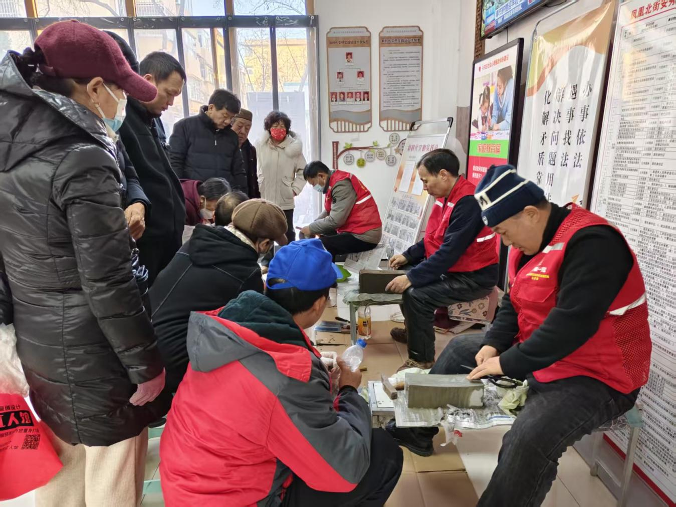 现场公益服务点位同样人气满满,社区联动公益团队为居民提供免费磨刀、理发服务。公益理发师细心询问需求,娴熟修剪发型,让居民清爽过节;磨刀师傅认真除锈开刃,将一把把钝刀打磨得锋利如新,切实解决居民日常生活难题,贴心举措赢得居民连连称赞。
